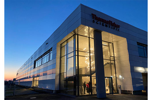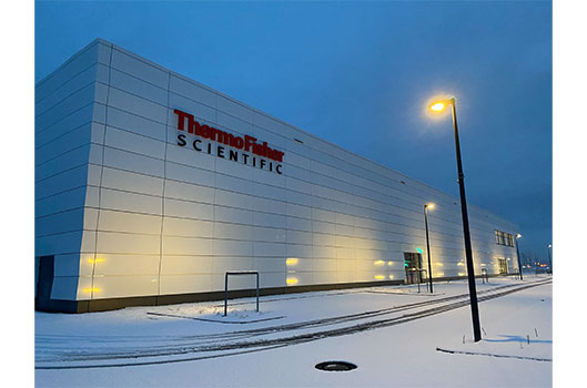 Neubau Logistikzentrum für Pharmazeutische Dienstleistungen für ThermoFisher Scientific. Lagerflächen Ambient und gekühlt, Wareneingang, Warenausgang, Verpackungs-möglichkeiten und Büroflächen.